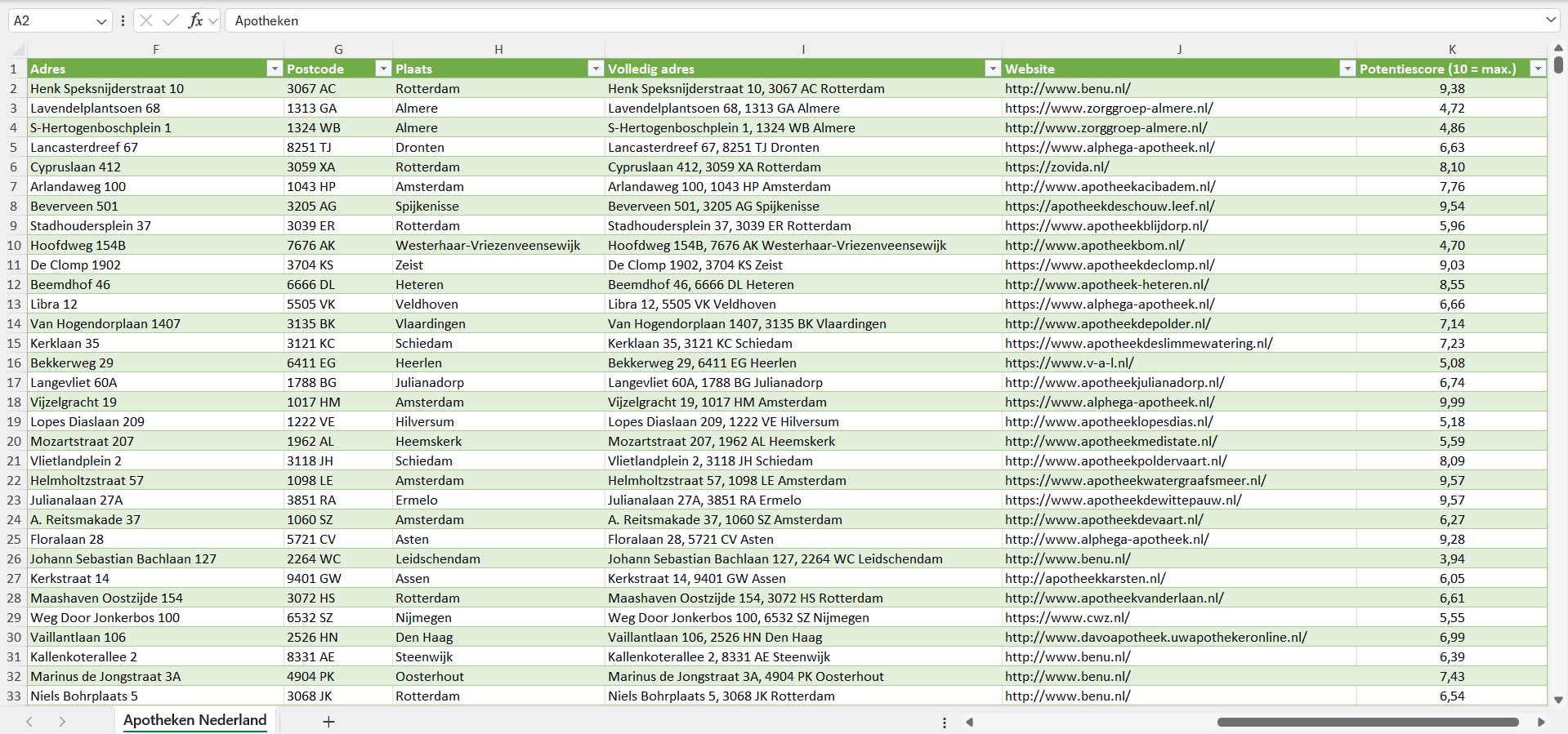 Deze dataset bevat alle apotheken in Nederland die we hebben kunnen vinden.