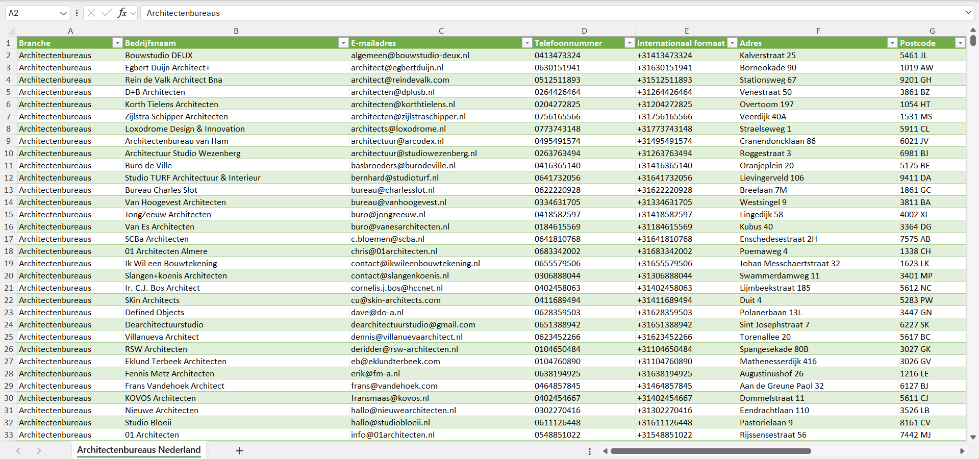 Dataset van alle architectenbureaus in Nederland