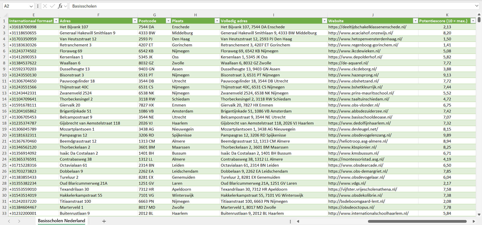 Deze dataset bevat alle basisscholen in Nederland die we hebben kunnen vinden.