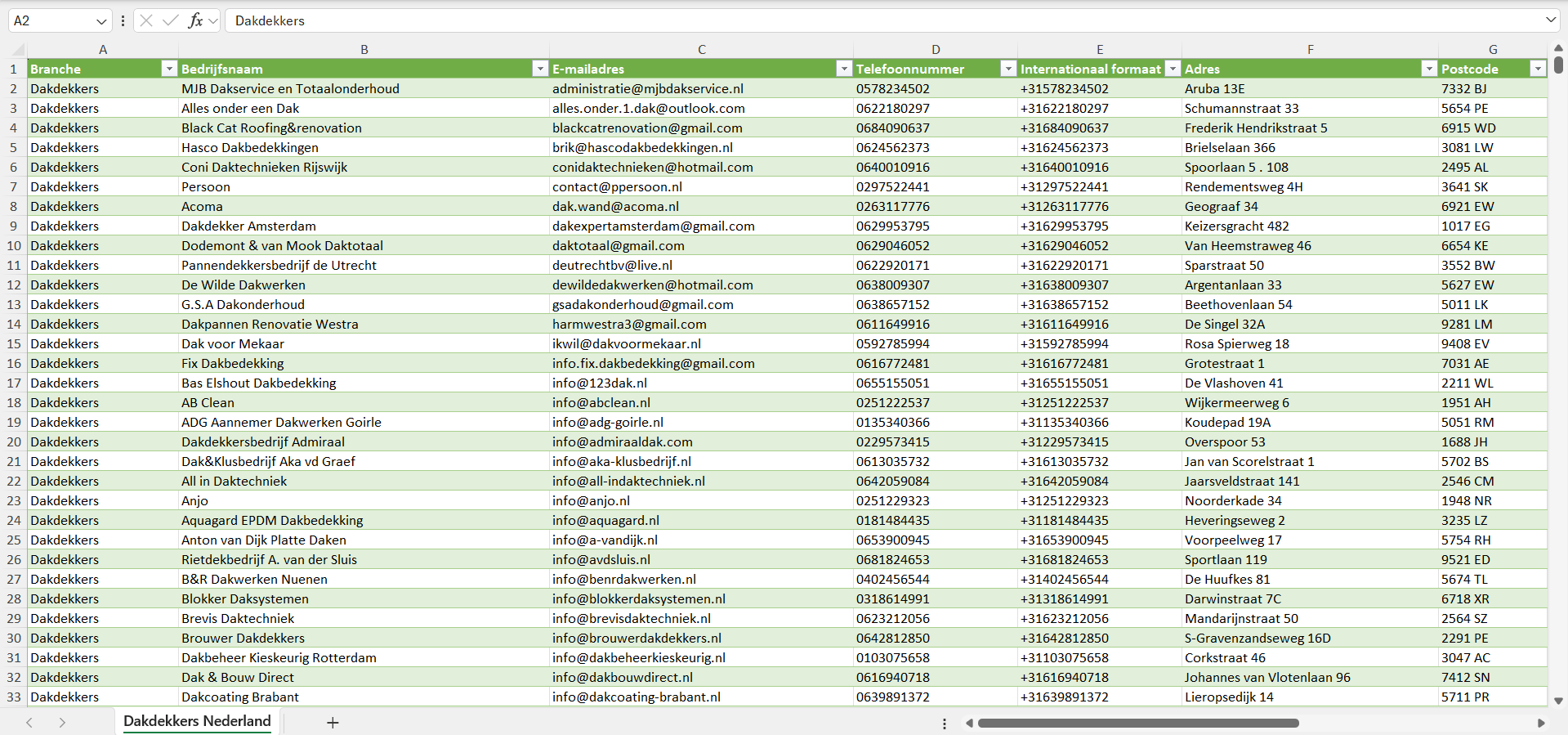 Deze dataset bevat alle dakdekkers in Nederland die we hebben kunnen vinden.