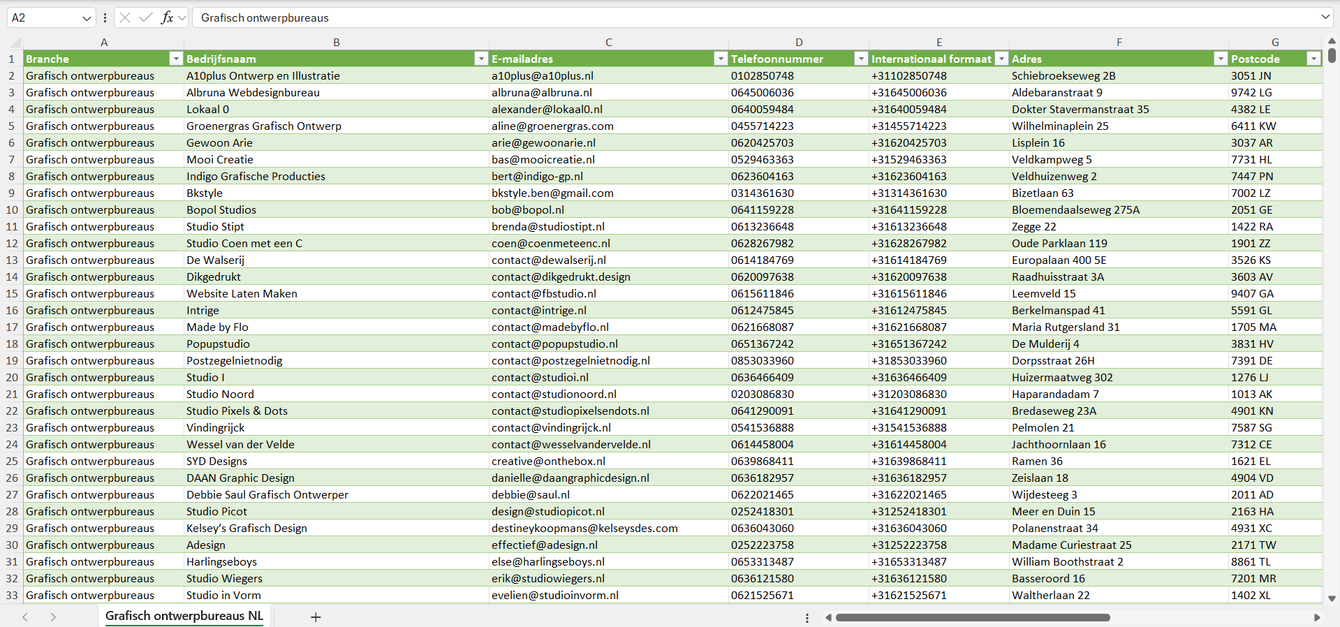 Dataset van alle grafisch ontwerpbureaus in Nederland