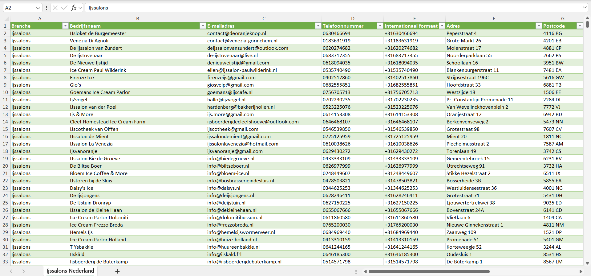 Dataset van alle ijssalons in Nederland