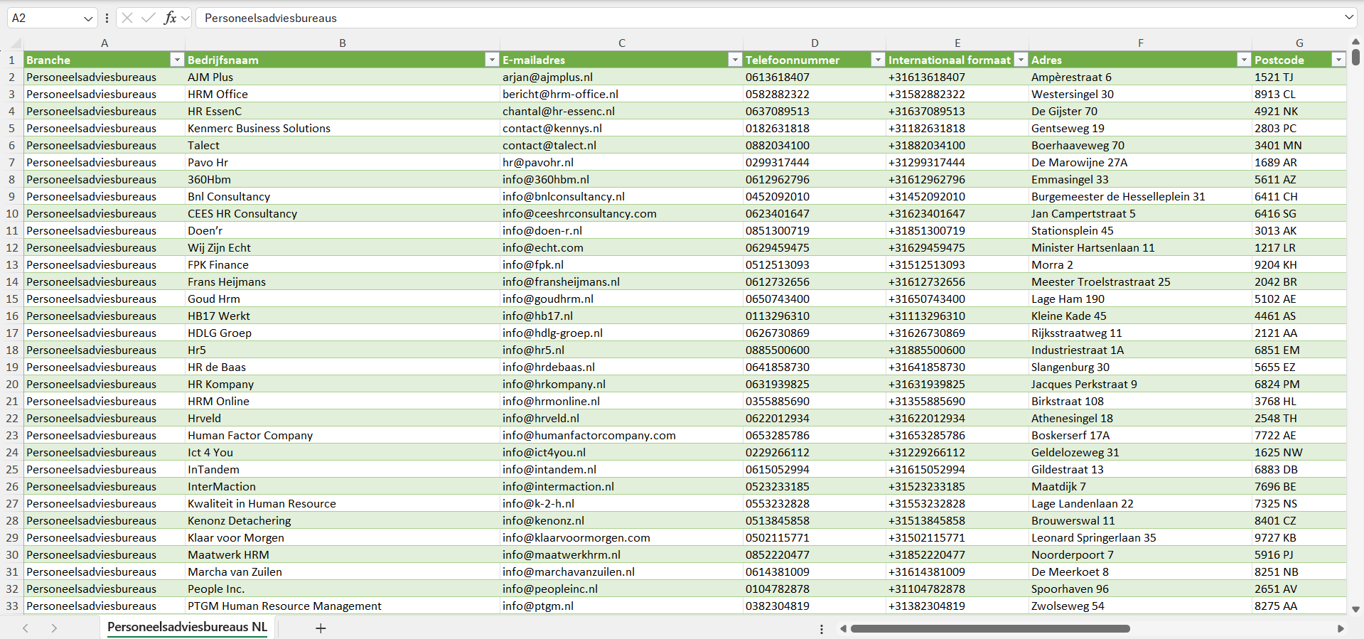 Dataset van alle personeelsadviesbureaus in Nederland