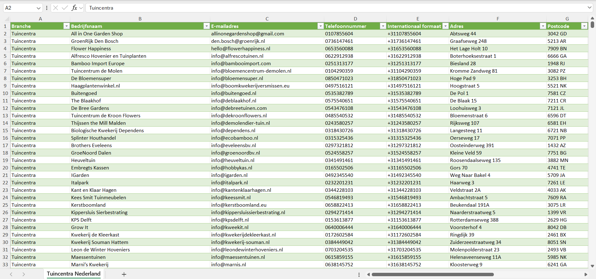 Bedrijvenlijsten.nl is opgericht door mensen uit de verkoop die zelf hebben ervaren hoe lastig het is om betrouwbare en uitgebreide zakelijke contactgegevens te vinden voor een eerlijke prijs. Omdat we onze eigen lijsten lange tijd intensief hebben gebruikt, weten we waar het in de praktijk op aankomt. Daarom leveren we een lijst van alle tuincentra in Nederland die klaar is voor direct gebruik, zodat je je ideale klanten efficiënt kunt bereiken.