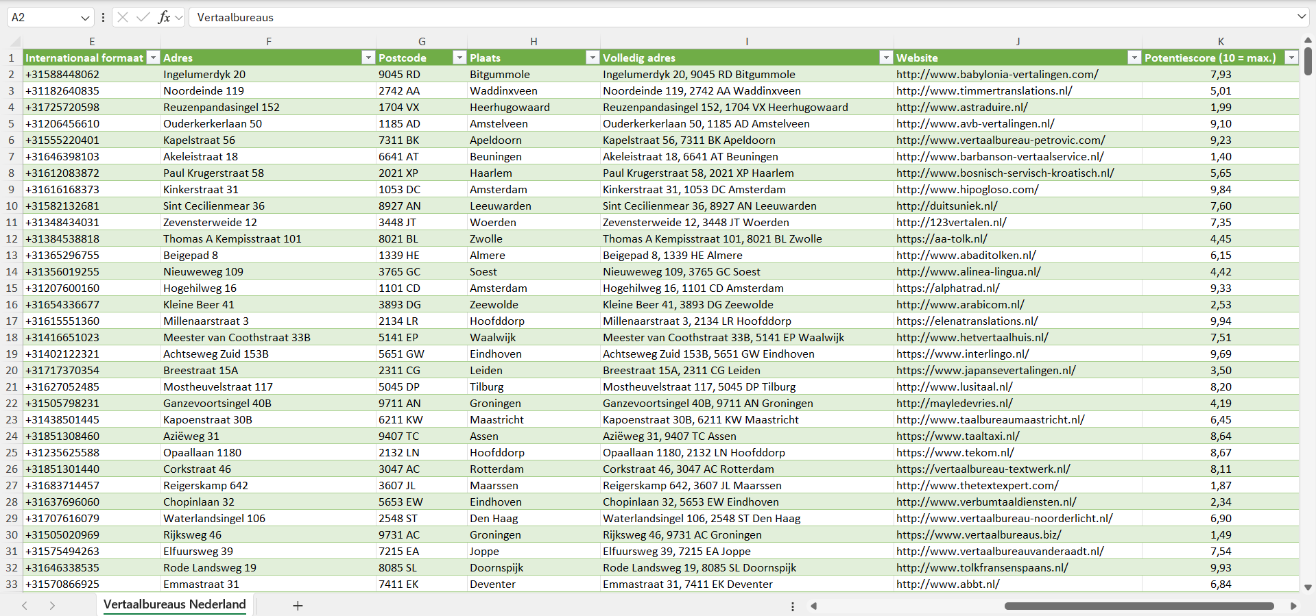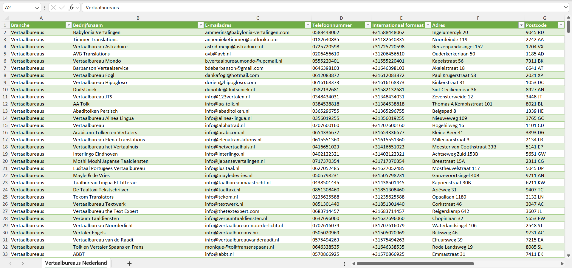Dataset van alle vertaalbureaus in Nederland