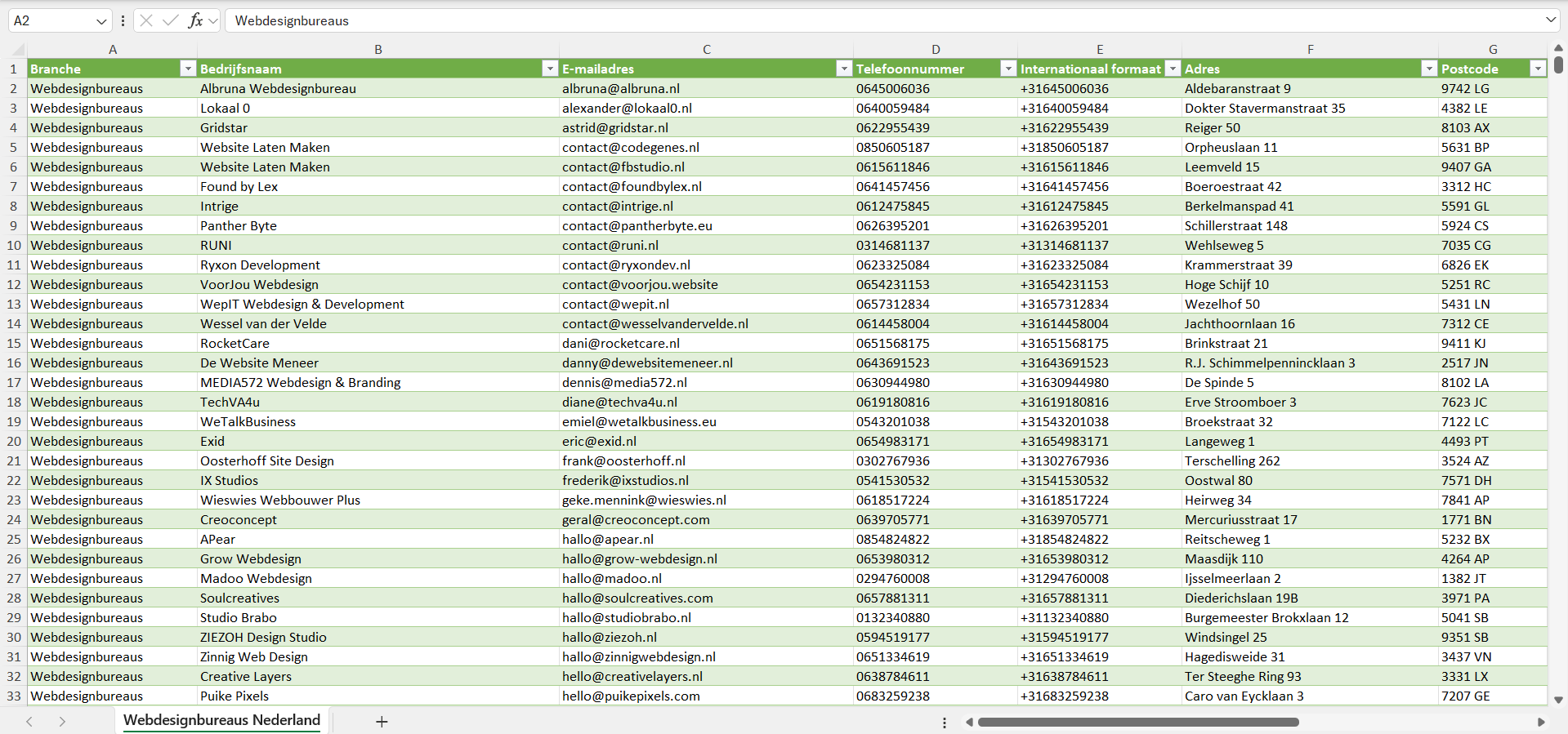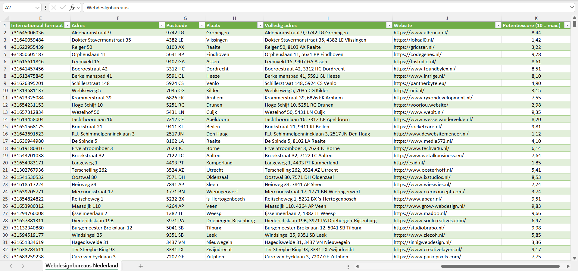 Dataset van alle webdesignbureaus in Nederland